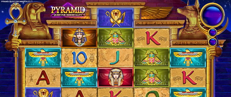Pyramid – Quest for Immortality is an innovative slot machine that feels fresh and exciting. The game layout is uniquely shaped and looks like a pyramid instead of the ordinary rectangular game layout. This makes the game lines stand out from the ones on the ordinary slots, which we find positive. In addition, the game has Exploding Symbols like in Gonzo's Quest, which is an amazing feature that we know many people value. After a winning combination, the respective symbols explode and are replaced by new ones. This makes it easy for the winnings to be multiplied twice or even three times.
